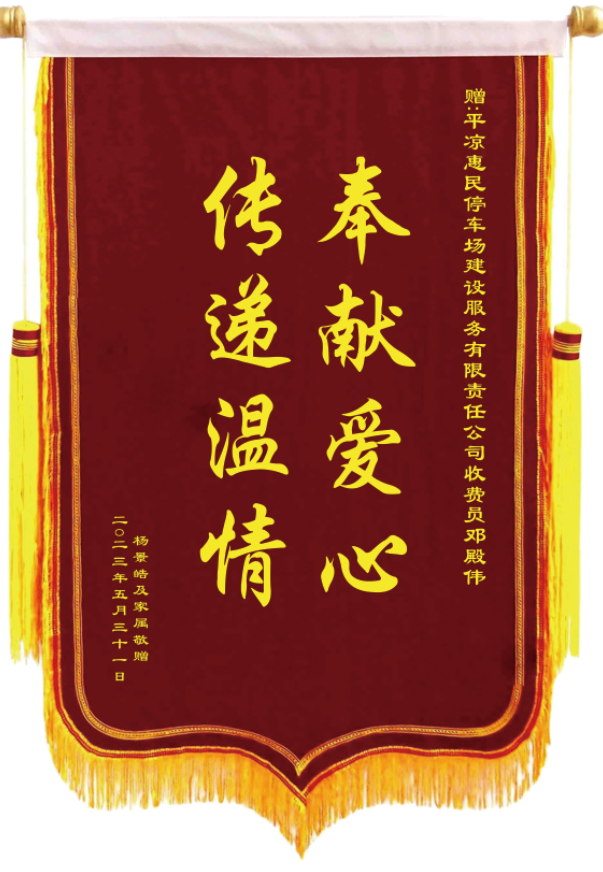 5月31日下午,一對老人和一位年輕的母親領(lǐng)著大約5歲的男孩為停車場公司送來一面錦旗,對停車收費員鄧殿偉助力尋親之舉表達(dá)感激之情。