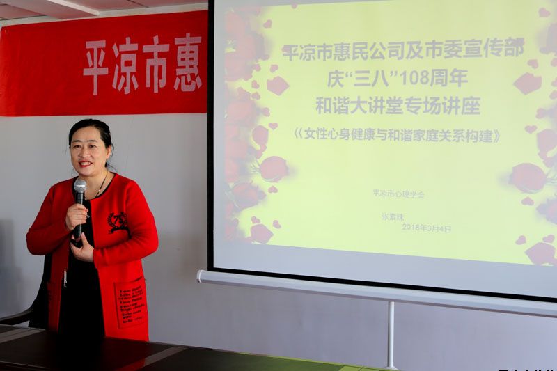 講座由平?jīng)鍪行睦韺W(xué)會會長、國家執(zhí)業(yè)醫(yī)師、國家二級心理咨詢師、EAP高級講師張素珠老師主講,張老師以“婦女心身健康與家庭及社會和諧”為主題,作了深入淺出,激情洋溢的講座,講座結(jié)合專業(yè)的學(xué)識和通俗的語言,系統(tǒng)講解了女性自出生到婚育各個成長階段的心理健康養(yǎng)護和相關(guān)心理問題矯正知識,深入分析了女性心理發(fā)展與家庭、社會的關(guān)系,結(jié)合現(xiàn)實案例解答了普通家庭生活中常見的心理和家庭關(guān)系問題。