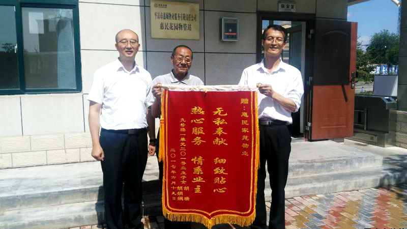 近日,惠民花園物管站工作人員正在門口忙著修剪草坪,一名年輕女士急匆匆地沖了進(jìn)來,把一面寫著“無私奉獻(xiàn)、細(xì)致貼心、熱心服務(wù)、情系業(yè)主”的錦旗放在了辦公桌上,嘴里不停的念叨,“多虧你們了,多虧你們了......”,物業(yè)站的工作人員一臉疑惑,經(jīng)過仔細(xì)詢問才知道,年輕女士是惠民花園9號(hào)樓1單元住戶胡青山大爺?shù)呐畠骸?/span>