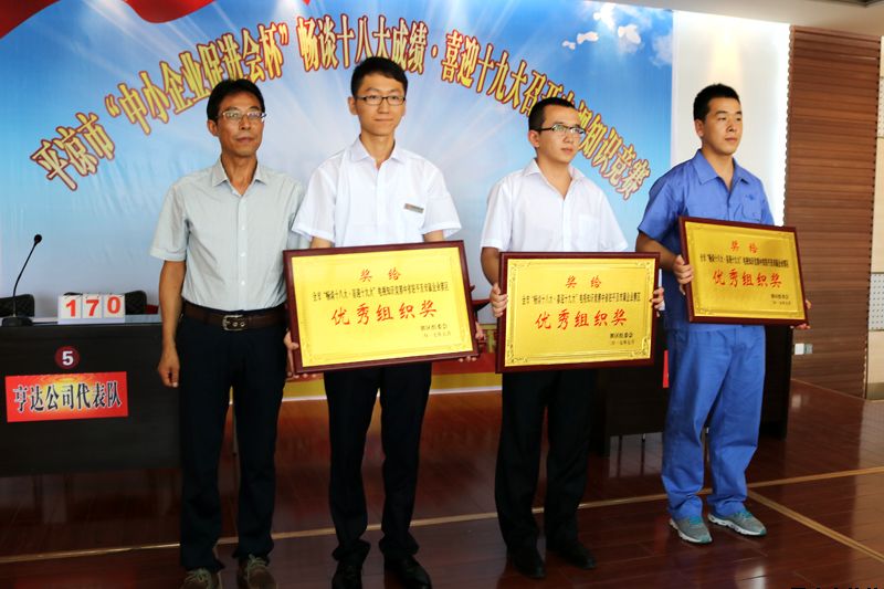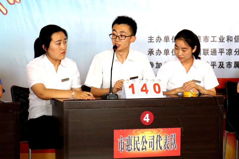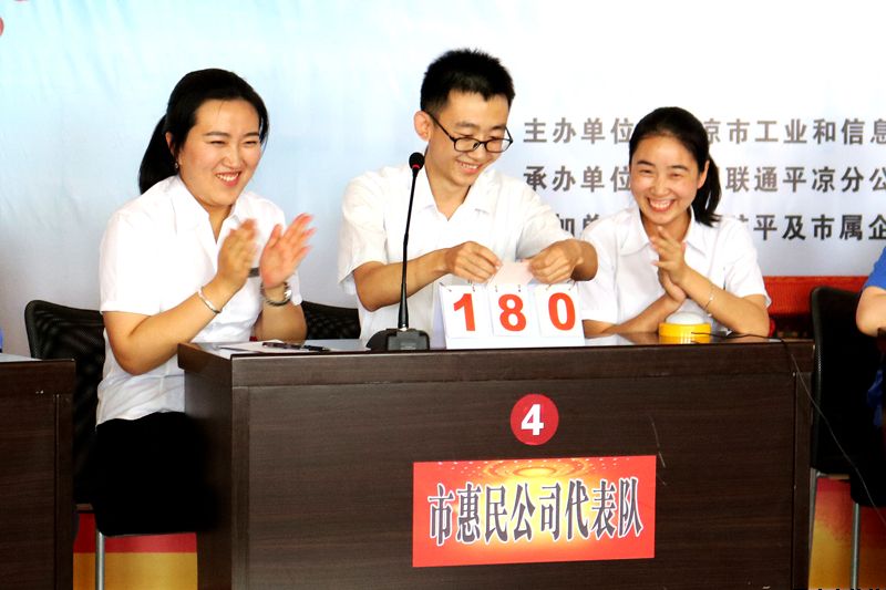 7月20日下午,平?jīng)鍪小爸行∑髽I(yè)促進(jìn)會杯”暢談十八大·喜迎十九大電視知識競賽中省駐平及市屬企業(yè)賽區(qū)比賽在聯(lián)通公司會議室圓滿結(jié)束,代表我公司參賽的員工張石晶、劉婕、魏靜、孟靖洋冷靜應(yīng)戰(zhàn),配合默契,高水平發(fā)揮,最終以220分的好成績?nèi)〉弥惺●v平及市屬企業(yè)賽區(qū)第一名,榮獲賽區(qū)一等獎(jiǎng),順利進(jìn)入全市復(fù)賽。