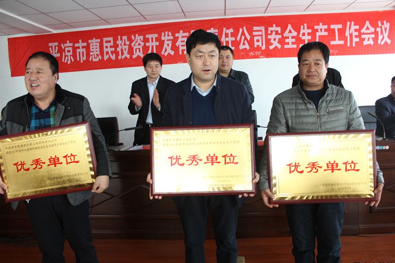 會上,副總經(jīng)理鄭忠軍傳達了省、市安全生產(chǎn)工作會議精神;副總經(jīng)理柳振源宣讀了公司《關(guān)于表彰獎勵2017年度項目施工安全生產(chǎn)管理先進單位的決定》;公司對項目施工安全生產(chǎn)管理先進單位進行了表彰獎勵;副總經(jīng)馬新平就2018年公司安全生產(chǎn)管理工作從抓好項目施工安全管理、抓好日常辦公安全管理、加大隱患排查整治力度、強化員工安全警示教育培訓(xùn)等四個方面詳細進行安排部署;黨委副書記、總經(jīng)理唐常寧與各部室、下屬公司簽訂了安全生產(chǎn)目標(biāo)管理責(zé)任書。