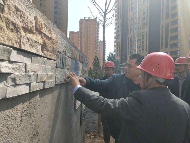在新北嘉園工地,唐常寧認(rèn)真查看了綠化苗木種植、室外景觀造型、商業(yè)裙樓外墻干掛施工質(zhì)量及主樓外墻、景墻配色效果后對房產(chǎn)公司提出三點要求,一是要發(fā)揮好主觀能動性,集思廣益、勇于創(chuàng)新、設(shè)計好小區(qū)室外景觀造型,充分體現(xiàn)小區(qū)人文特色;二要精心組織,認(rèn)真做好小區(qū)綠化工程,確保已栽植苗木成活率,努力營造生態(tài)小區(qū);三要緊抓施工,確保項目總體進(jìn)度按期完成,提前為工程竣工驗收做好準(zhǔn)備,并與棚改中心銜接,做好新北嘉園項目交付對接工作。
