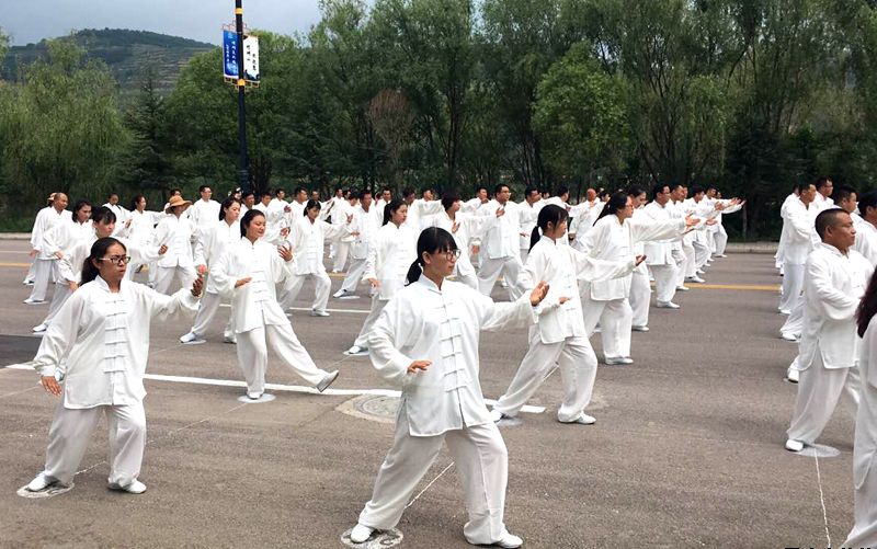 7月21日上午,第三屆絲綢之路(敦煌)國際文化博覽會平?jīng)龇謺觥?018年平?jīng)觥め轻嘉幕糜喂?jié)暨“弈決崆峒”世界道教名山圍棋邀請賽啟動儀式后,萬人太極拳集體及方隊展演活動在崆峒古鎮(zhèn)舉辦,公司組織100名太極拳愛好者參加展演。