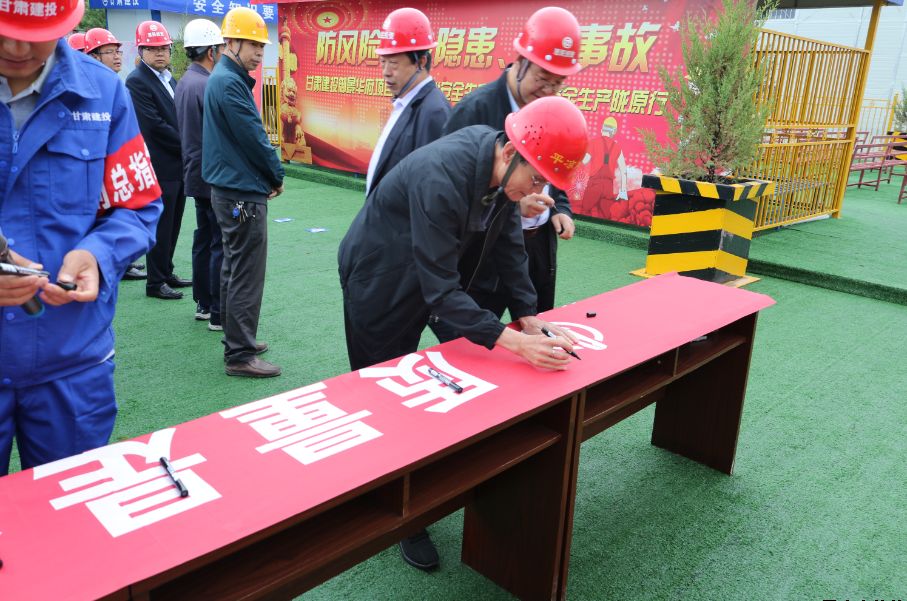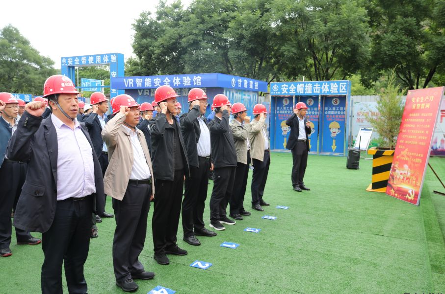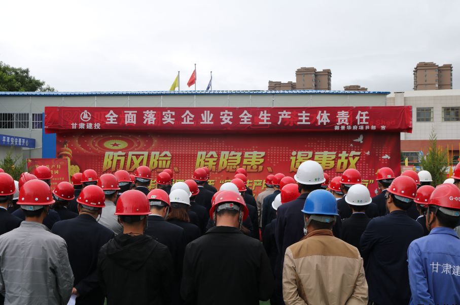 為深入學(xué)習(xí)宣傳貫徹習(xí)近平總書記關(guān)于安全生產(chǎn)的重要論述,積極響應(yīng)國(guó)家、省、市和上級(jí)有關(guān)單位關(guān)于開(kāi)展“安全生產(chǎn)月”活動(dòng)的號(hào)召,6月27日上午,公司在御景華府在建項(xiàng)目工地開(kāi)展2019年“安全生產(chǎn)月”活動(dòng)。公司黨委委員、總經(jīng)理胡紅訓(xùn),市安監(jiān)站站長(zhǎng)尚平,副總經(jīng)理魏顯文、馬新平、柳振源,總工程師高健,總經(jīng)濟(jì)師王國(guó)太,公司職工代表,御景華府、平?jīng)鲆恢泻突菝裢顿Y大廈項(xiàng)目各參建單位負(fù)責(zé)人,共計(jì)70余人參加本次活動(dòng)。
