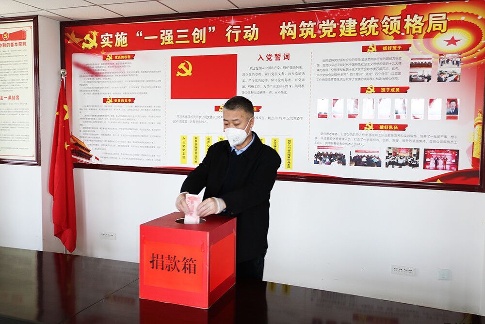 為盡可能減少人員接觸,公司黨委做好防護的前提下,組織了簡單簡短的捐款儀式。公司黨委書記、董事長唐常寧,黨委委員、總經(jīng)理胡紅訓及公司全體黨委班子成員帶頭進行了捐款。公司全體黨員紛紛響應,在所在黨支部積極捐款,充分弘揚“一方有難,八方支援”的傳統(tǒng)美德,體現(xiàn)了廣大黨員“守初心、擔使命”主動為抗擊疫情作貢獻的先鋒模范作用。