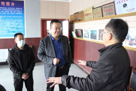 4月2日上午,市惠民公司總經(jīng)理胡紅訓帶隊深入平?jīng)鍪袠s康實業(yè)公司開展保前調(diào)研工作,副總經(jīng)理王徐周、擔保公司負責人及客戶經(jīng)理陪同調(diào)研。