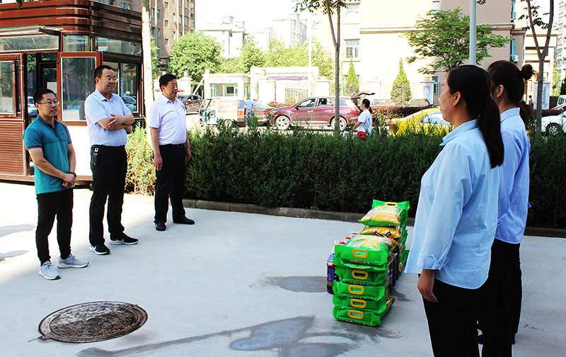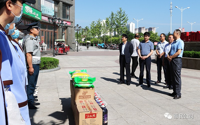 8月7日,受市惠民公司黨委書記、董事長(zhǎng)唐常寧委托,公司黨委委員、總經(jīng)理胡紅訓(xùn),副總經(jīng)理魏顯文、王徐周、鄭忠軍、馬新平、柳振源,總工程師高健,總經(jīng)濟(jì)師王國(guó)太分組帶領(lǐng)黨委辦(辦公室)和工會(huì)相關(guān)負(fù)責(zé)人深入惠通公司、平?jīng)鲆恢许?xiàng)目、惠民花園物管站、御景華府、惠民大廈、新城國(guó)際物管站、柳湖路苗圃、新北嘉園物管站、法院服務(wù)中心、平?jīng)鲑e館立體停車庫(kù),向奮戰(zhàn)在一線的基層員工送去慰問(wèn),并將公司準(zhǔn)備的慰問(wèn)品送到他們手中。
