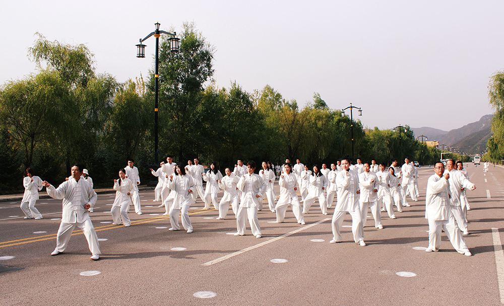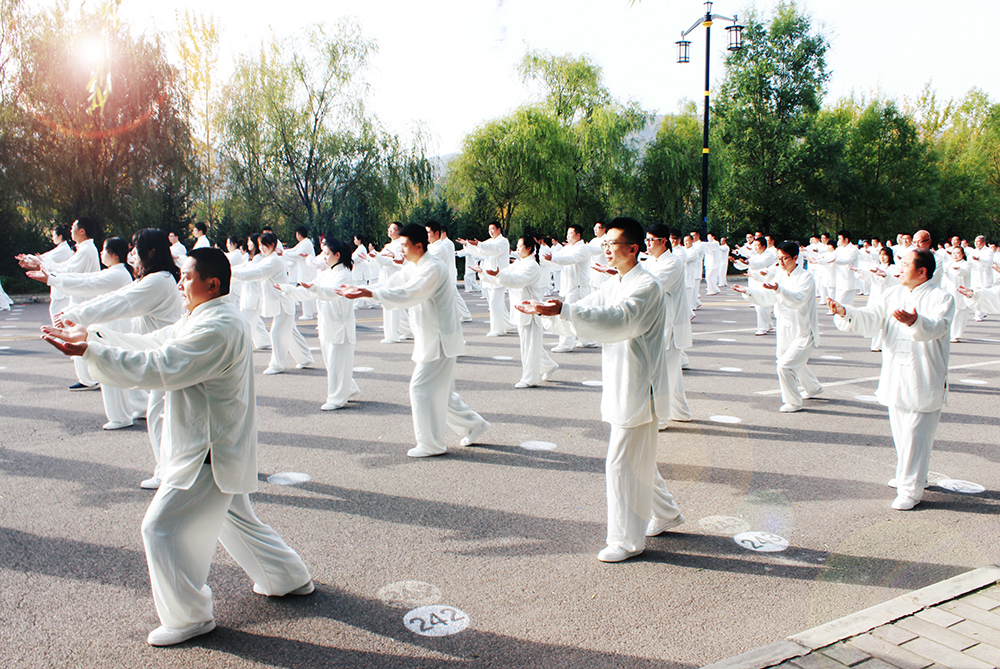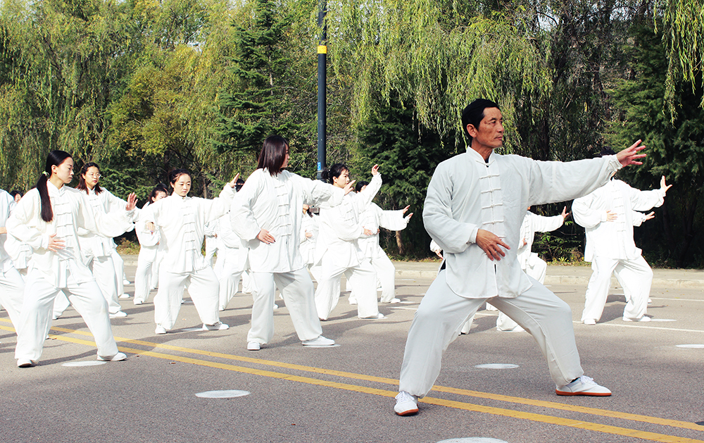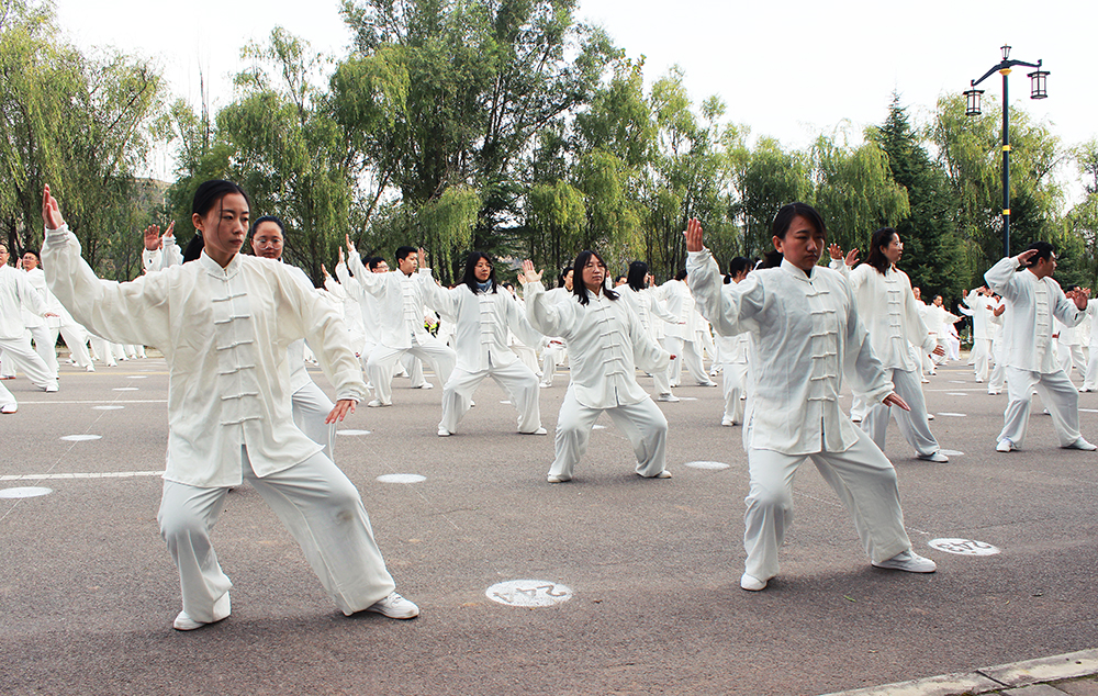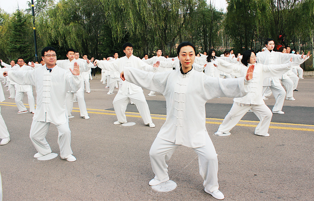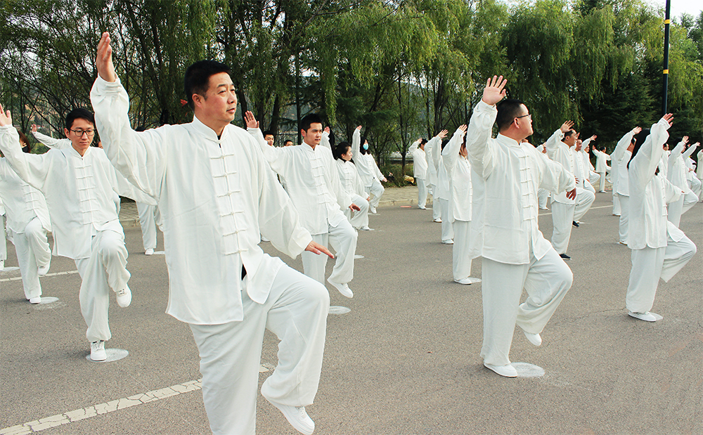 10月20日上午,2020年“交響絲路·問道崆峒”平?jīng)觥め轻嘉幕糜喂?jié)萬人太極拳展演活動(dòng)在崆峒古鎮(zhèn)舉辦,公司組織50名太極拳愛好者參加展演。