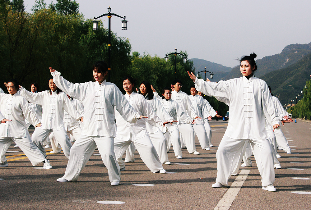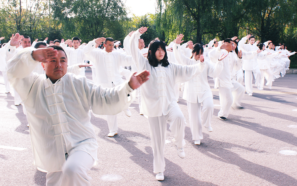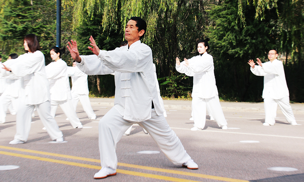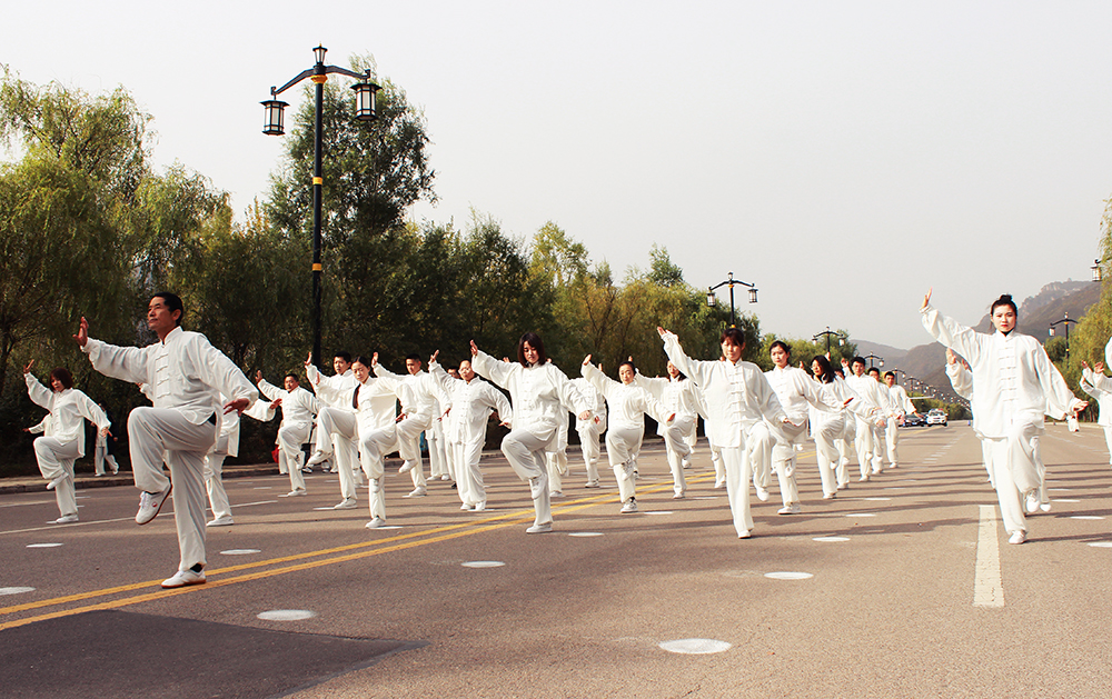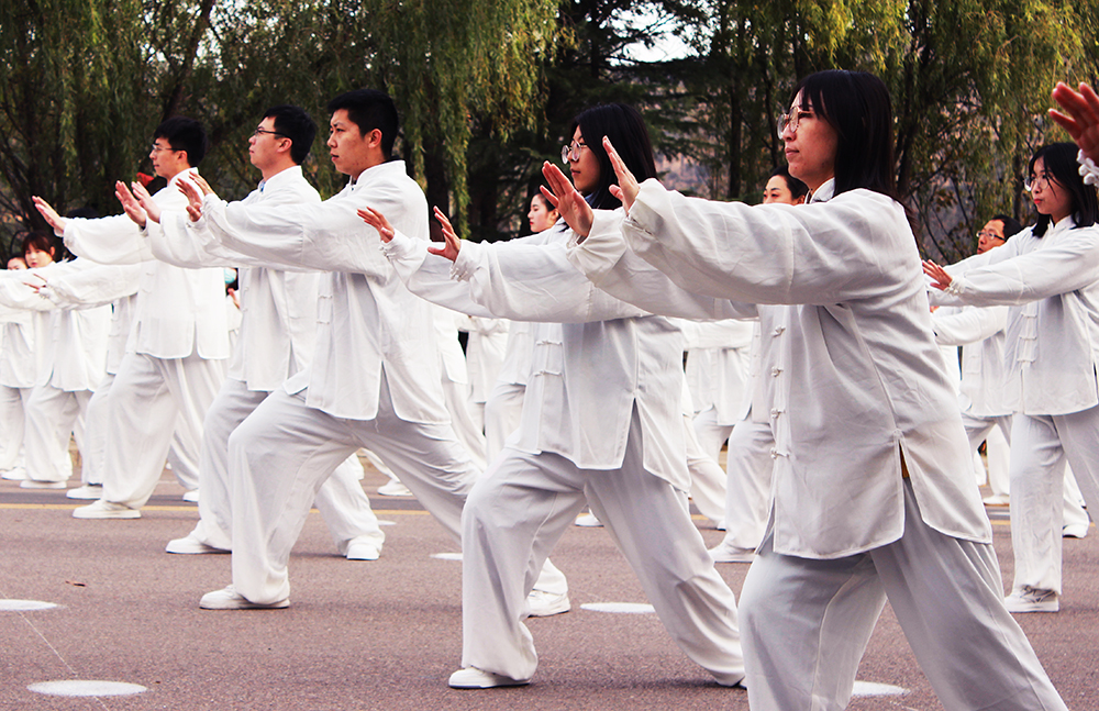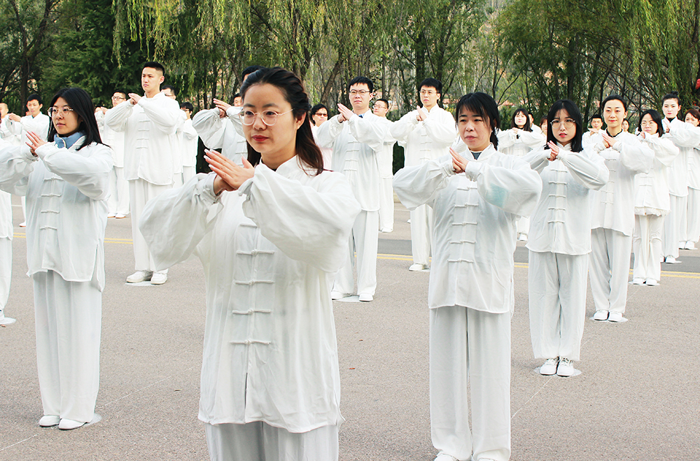 10月20日上午,2020年“交響絲路·問道崆峒”平?jīng)觥め轻嘉幕糜喂?jié)萬人太極拳展演活動(dòng)在崆峒古鎮(zhèn)舉辦,公司組織50名太極拳愛好者參加展演。