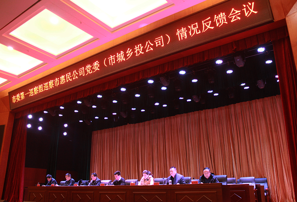 根據(jù)巡察工作領(lǐng)導(dǎo)小組的安排,12月8日,市委第一巡察組向市惠民公司黨委(市城鄉(xiāng)投公司)反饋巡察情況。市委第一巡察組組長(zhǎng)劉剛代表巡察組向市惠民公司黨委(市城鄉(xiāng)投公司)領(lǐng)導(dǎo)班子進(jìn)行了反饋,市委常委、市政府常務(wù)副市長(zhǎng)葉劍芳出席會(huì)議并講話,市紀(jì)委常委廖德華就做好反饋意見的整改落實(shí)工作提出了具體要求,市惠民公司黨委書記、董事長(zhǎng)唐常寧主持會(huì)議并作表態(tài)發(fā)言。