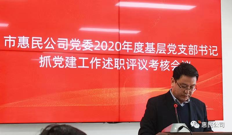 1月21日,市惠民公司黨委召開2020年度基層黨支部書記抓黨建工作述職評議考核會(huì)議。會(huì)議由黨委書記、董事長唐常寧主持,公司黨員領(lǐng)導(dǎo)班子成員,各黨支部書記,各部室、下屬公司主要負(fù)責(zé)人及黨務(wù)工作人員參加會(huì)議。