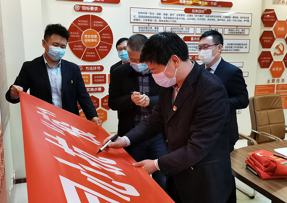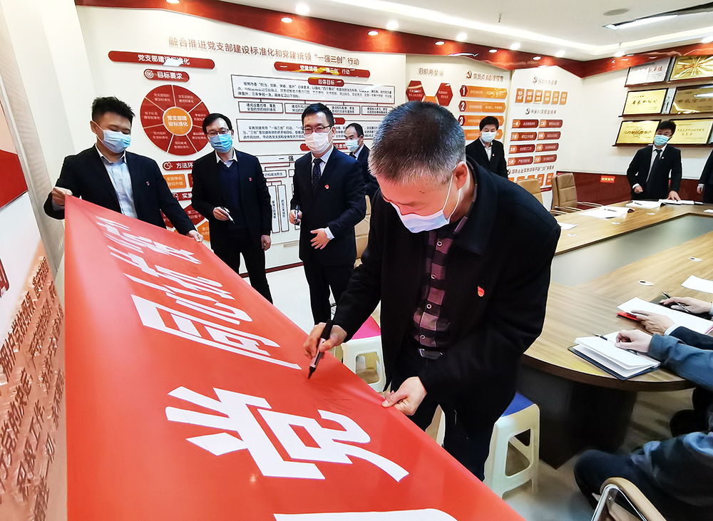 活動(dòng)現(xiàn)場(chǎng)宣讀了“共同抗疫、文明過(guò)節(jié)”倡議書,全體黨員面對(duì)黨旗鄭重宣誓,堅(jiān)決做好疫情防控工作,隨后,參與活動(dòng)人員紛紛在印有“赤心向黨,同心抗‘疫’”的條幅上簽名,爭(zhēng)做企業(yè)疫情防控的先遣隊(duì)與“逆行者”。