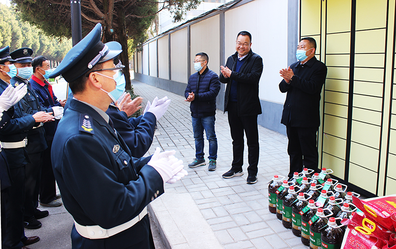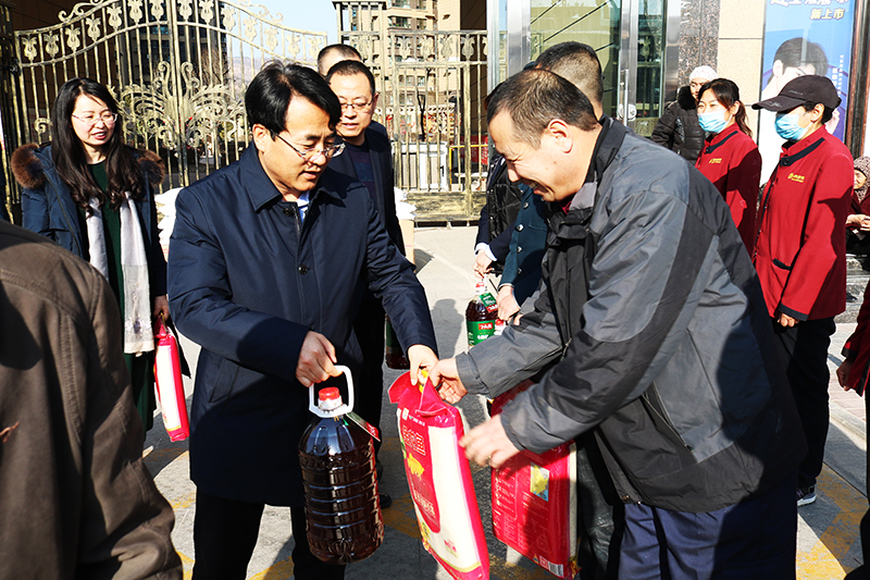 2月8日,市惠民公司黨委委員、總經(jīng)理胡紅訓,副總經(jīng)理王徐周、鄭忠軍、馬新平、王彥彥分組帶領(lǐng)黨委辦(辦公室)和工會負責人深入惠通公司、新城國際物管站、柳湖路苗圃、新北嘉園物管站、惠民花園物管站、市委市政府物業(yè)服務(wù)中心、法院物業(yè)服務(wù)中心、平?jīng)鲑e館立體停車庫、惠民大廈物業(yè)服務(wù)中心,看望、慰問了疫情防控和春節(jié)期間堅守崗位的一線職工,向他們送去了慰問品和新年祝福。