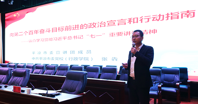 下午,邀請(qǐng)市委黨校(行政學(xué)院)辦公室副主任、黨史黨建專業(yè)副教授張犇作了題為《向第二個(gè)百年奮斗目標(biāo)前進(jìn)的政治宣言和行動(dòng)指南》的宣講輔導(dǎo)。張犇從充分認(rèn)識(shí)“七一”重要講話的重大意義、準(zhǔn)確把握“七一”重要講話的豐富內(nèi)涵、全力推動(dòng)“七一”重要講話精神落地生根三個(gè)方面,對(duì)習(xí)近平總書(shū)記“七一”重要講話精神進(jìn)行了詳細(xì)解讀。