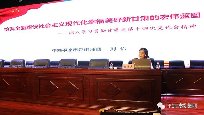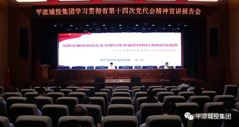 為進(jìn)一步深入學(xué)習(xí)貫徹省第十四次黨代會(huì)精神,按照市委及市政府國資委黨委的統(tǒng)一安排,7月14日,平?jīng)龀峭都瘓F(tuán)舉辦學(xué)習(xí)貫徹省第十四次黨代會(huì)精神宣講報(bào)告會(huì),邀請(qǐng)市委講師團(tuán)辦公室主任、全省中青年理論宣講骨干劉怡同志作專題宣講報(bào)告。公司黨委委員、副總經(jīng)理魏顯文主持會(huì)議。在家的領(lǐng)導(dǎo)班子成員,中層干部及全體黨員,共計(jì)120余人參加會(huì)議。