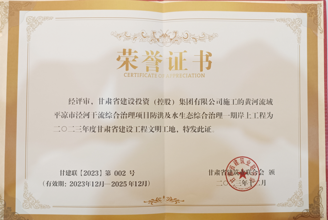 近日,由平?jīng)龀峭都瘓F(tuán)實(shí)施的黃河流域平?jīng)鍪袥芎痈闪骶C合治理項(xiàng)目防洪及水生態(tài)綜合治理一期岸上工程,榮獲 2023 年度甘肅省建設(shè)工程文明工地榮譽(yù)稱號(hào)。這是該項(xiàng)目獲得中國(guó)海綿城市十年成就展項(xiàng)目典范之后,榮獲的又一殊榮。