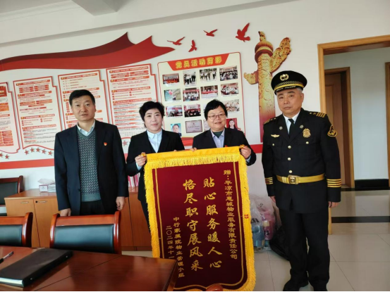 近日,中行家屬院業(yè)委管理人員來到惠城物業(yè)物業(yè)站,贈(zèng)送“貼心服務(wù)暖人心,恪盡職守展風(fēng)采”錦旗。