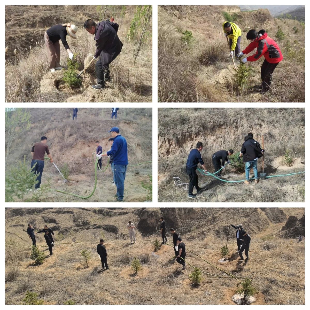 植樹(shù)現(xiàn)場(chǎng),全體職工按照劃分的責(zé)任片區(qū),在技術(shù)人員的指導(dǎo)下,分工協(xié)作,揮鍬鏟土、扶苗培根、提水澆灌,現(xiàn)場(chǎng)熱火朝天。經(jīng)過(guò)近一天的辛勤勞動(dòng),四百余株新苗整齊矗立,為初春的大地增添勃勃生機(jī)。