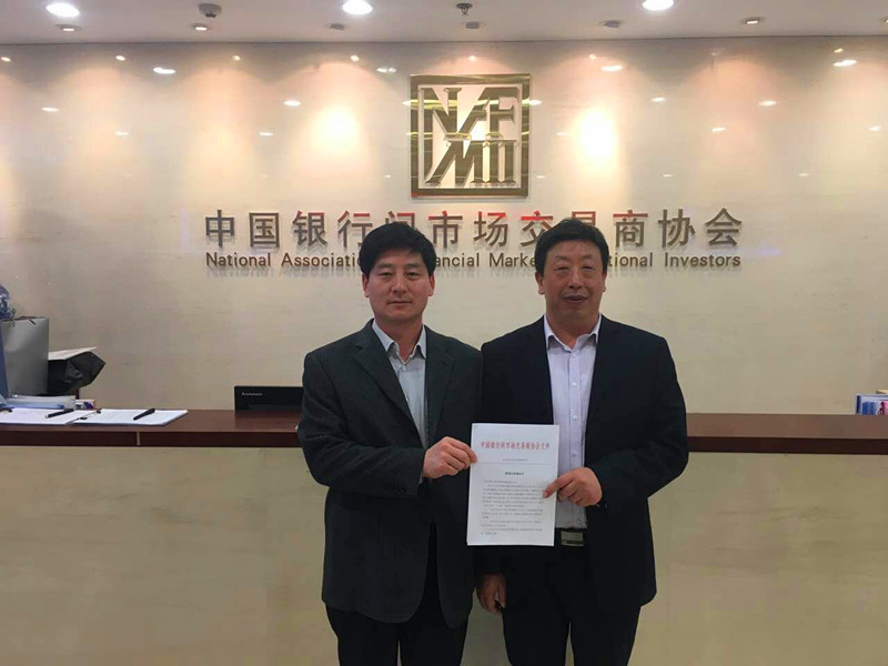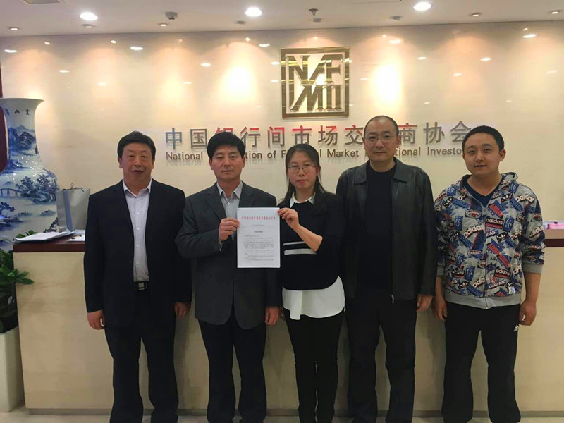 副總經(jīng)魏顯文(左二)和融資部、財(cái)務(wù)部部長(zhǎng)王國(guó)太(左一)成功領(lǐng)取中國(guó)銀行間市場(chǎng)交易商協(xié)會(huì)非公開定向債務(wù)融資工具注冊(cè)通知書