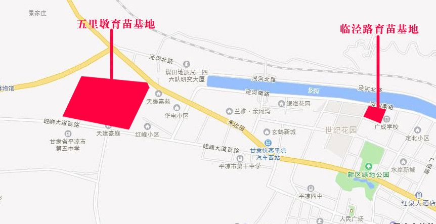 平?jīng)霾菽咎脠@林綠化有限責(zé)任公司育苗基地分布圖