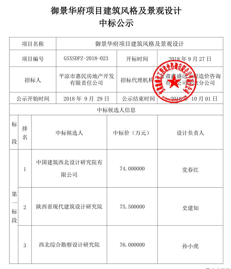 御景華府項目建筑風(fēng)格及景觀設(shè)計中標(biāo)公示