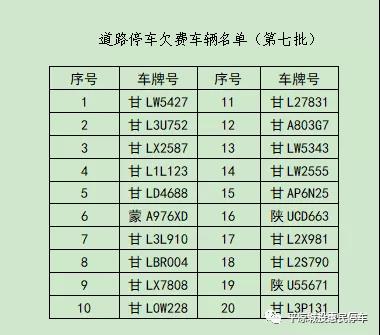 平?jīng)鲋行某菂^(qū)智慧停車第七批路側(cè)停車欠費(fèi)車輛信息公示