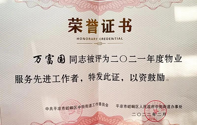 2月11日,平?jīng)鍪嗅轻紖^(qū)中街街道召開2022年度物業(yè)管理工作大會(huì),惠城物業(yè)公司被評(píng)為“2021年度優(yōu)秀物業(yè)服務(wù)企業(yè)”,新北嘉園物業(yè)服務(wù)中心保安員萬(wàn)富國(guó)同志榮獲“物業(yè)服務(wù)先進(jìn)工作者”。此次榮譽(yù)的獲得,是社區(qū)和全體業(yè)主對(duì)物業(yè)服務(wù)、小區(qū)環(huán)境、文明氛圍的認(rèn)可,更是對(duì)新北嘉園物業(yè)中心員工工作的肯定。