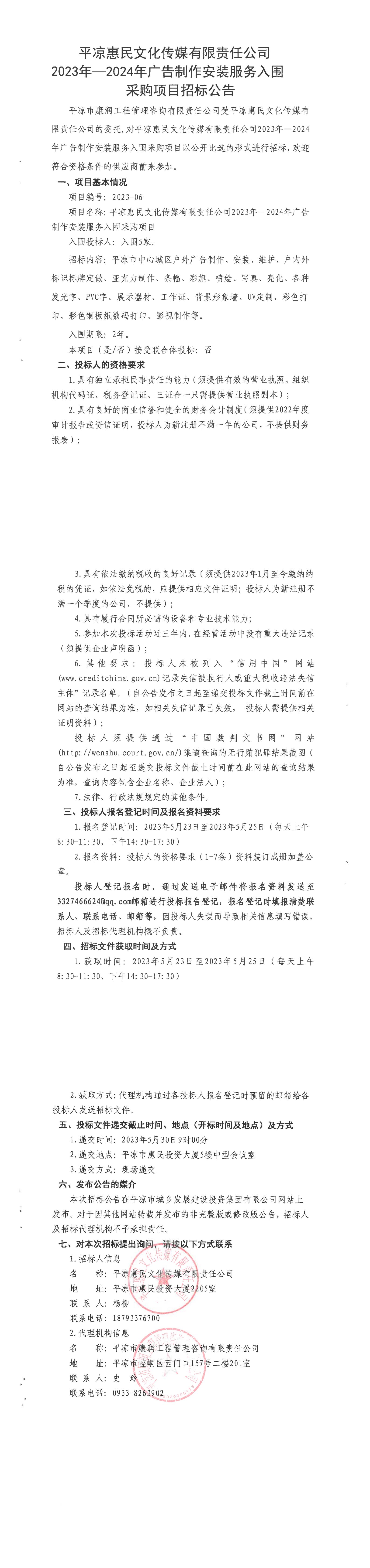 2023年——2024年廣告制作安裝服務(wù)入圍采購項目招標(biāo)公告